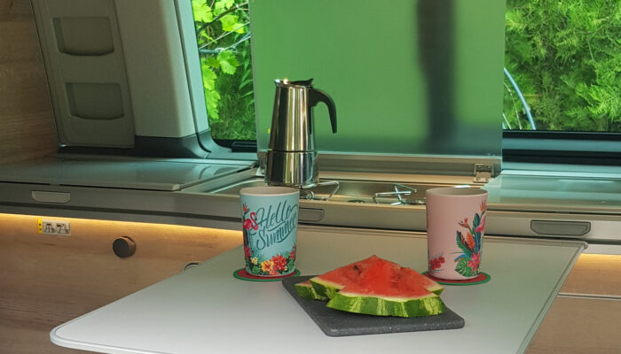 • Wyposażenie kuchenne ( min. garnki, talerze, kubki, sztućce, kawiarka)